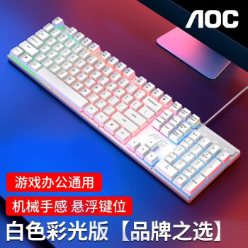 AOC真机械手感键盘鼠标套装有线游戏背光发光台式电脑外设笔记本办公lol吃鸡网吧电竞静音薄膜键鼠KB121白色(彩光版)